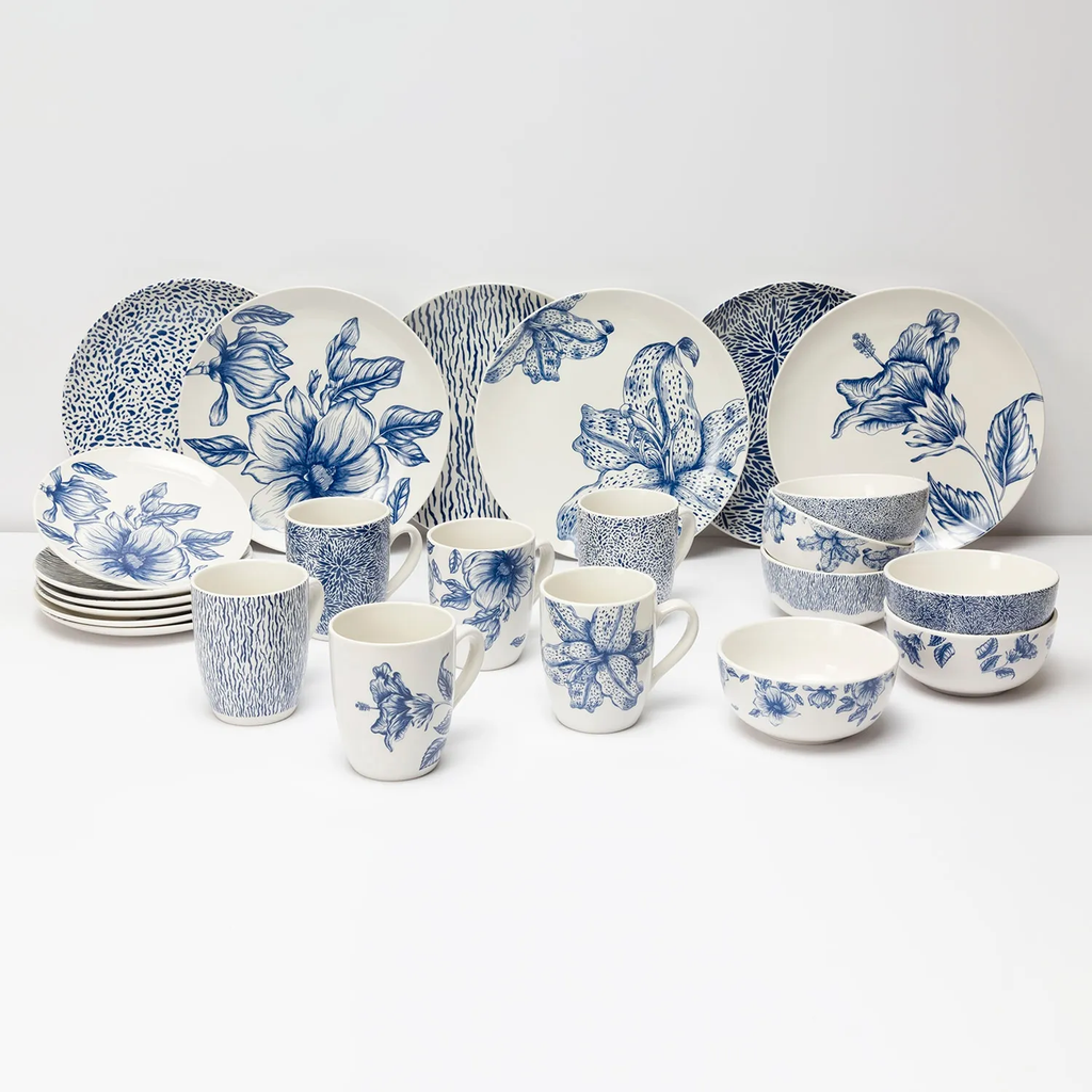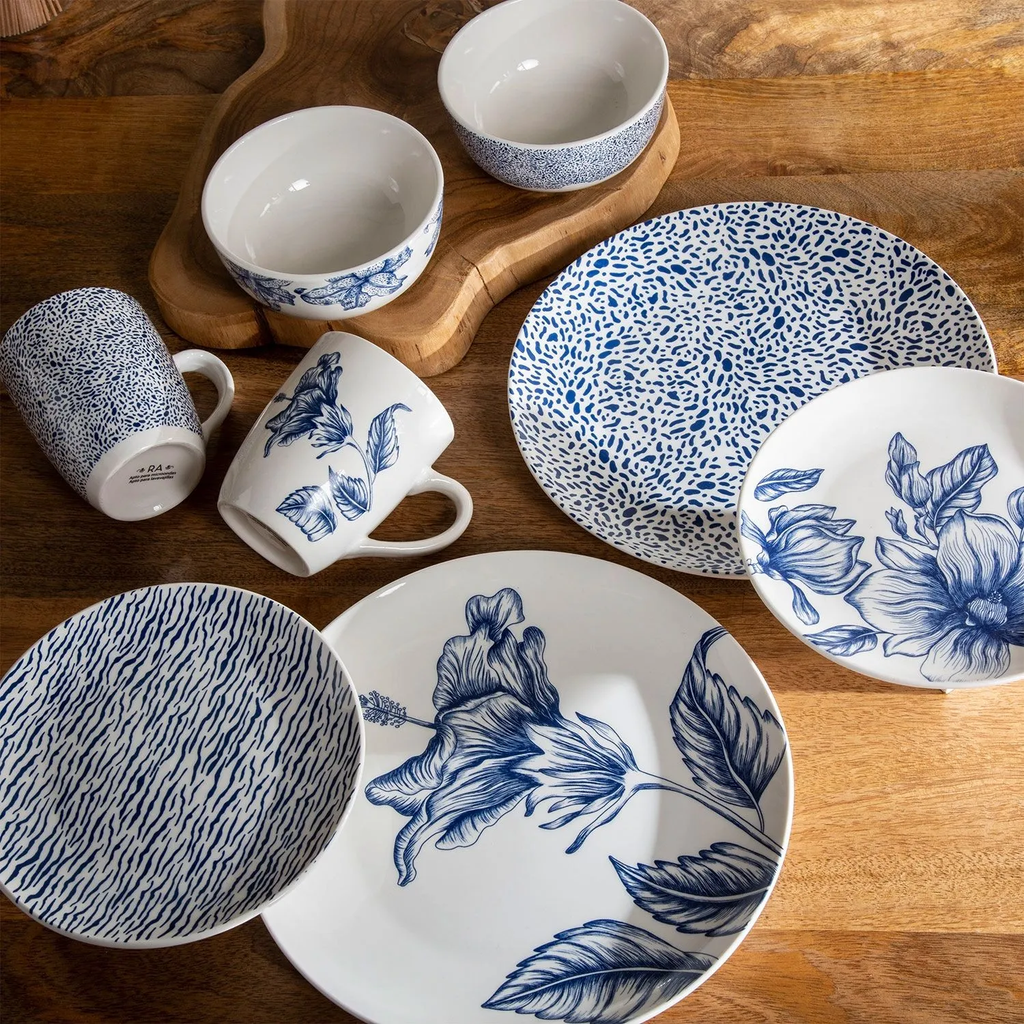 El Juego de Vajilla Roberta Allen Botanical Blue incluye: