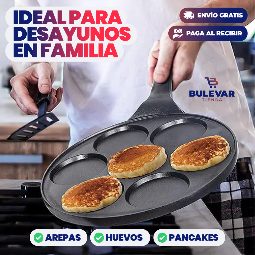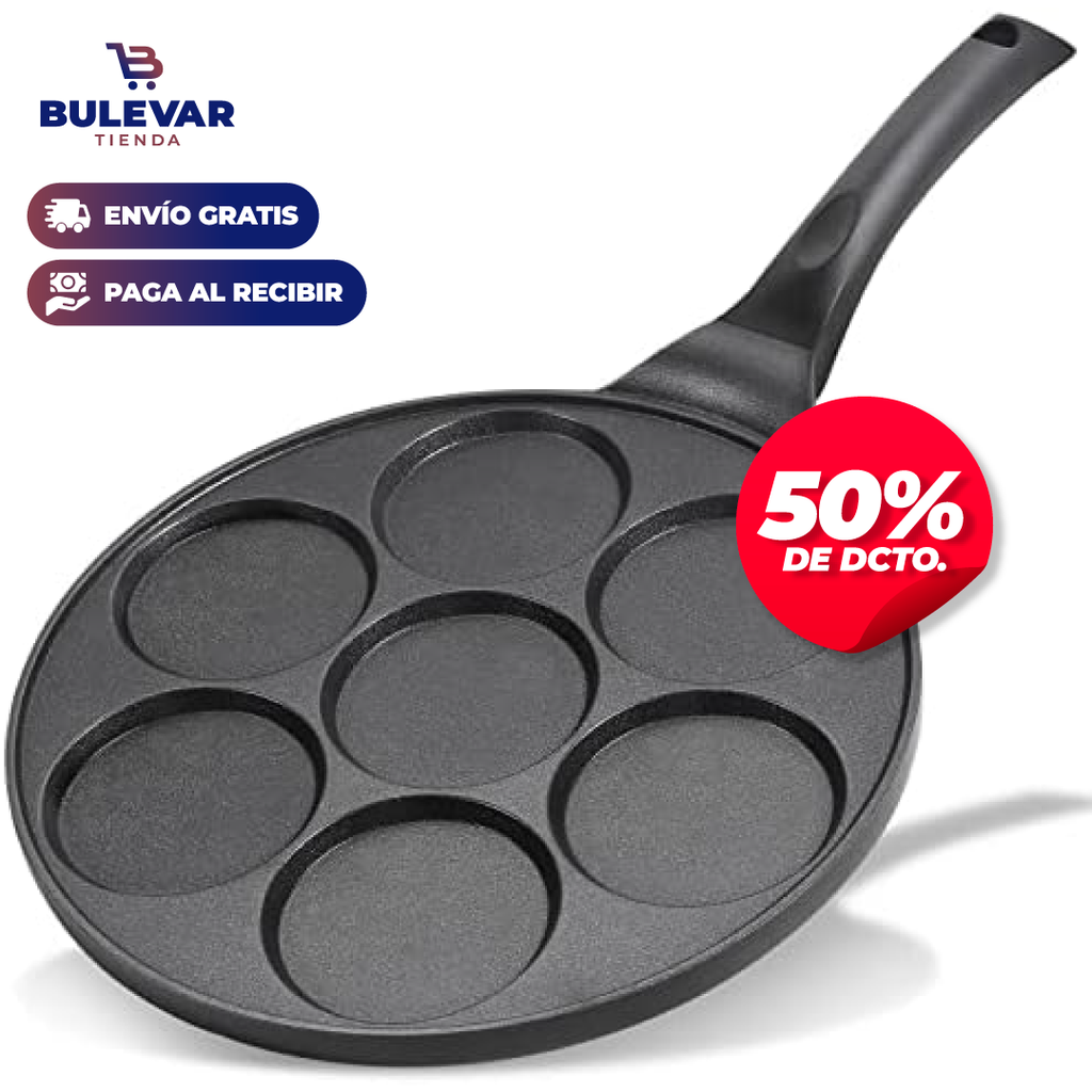 Nuestra sartén antiadherente 7 en 1 es el utensilio de cocina perfecto para preparar una variedad de deliciosos platos, desde panqueques y huevos hasta arepas y crepes. Con su diseño innovador de 7 moldes, esta sartén te permite cocinar múltiples alimentos al mismo tiempo, ahorrándote tiempo y esfuerzo en la cocina. Además, su revestimiento antiadherente de calidad garantiza resultados perfectos y una limpieza sin complicaciones después de cada uso.