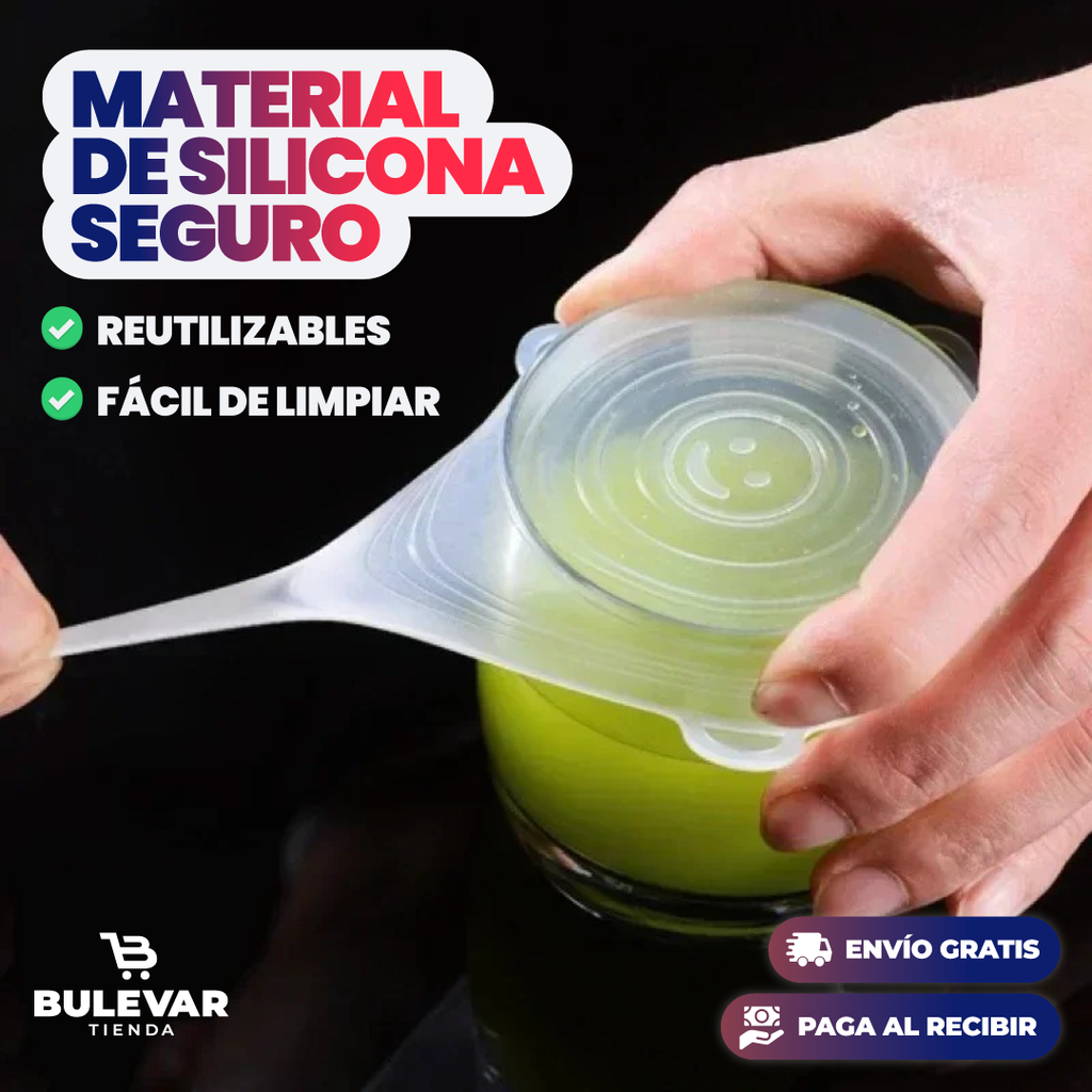 Preserva la frescura de tus alimentos y reduce el desperdicio con nuestras Tapas de Silicona Reutilizables. Adaptables, fáciles de limpiar y amigables con el medio ambiente.