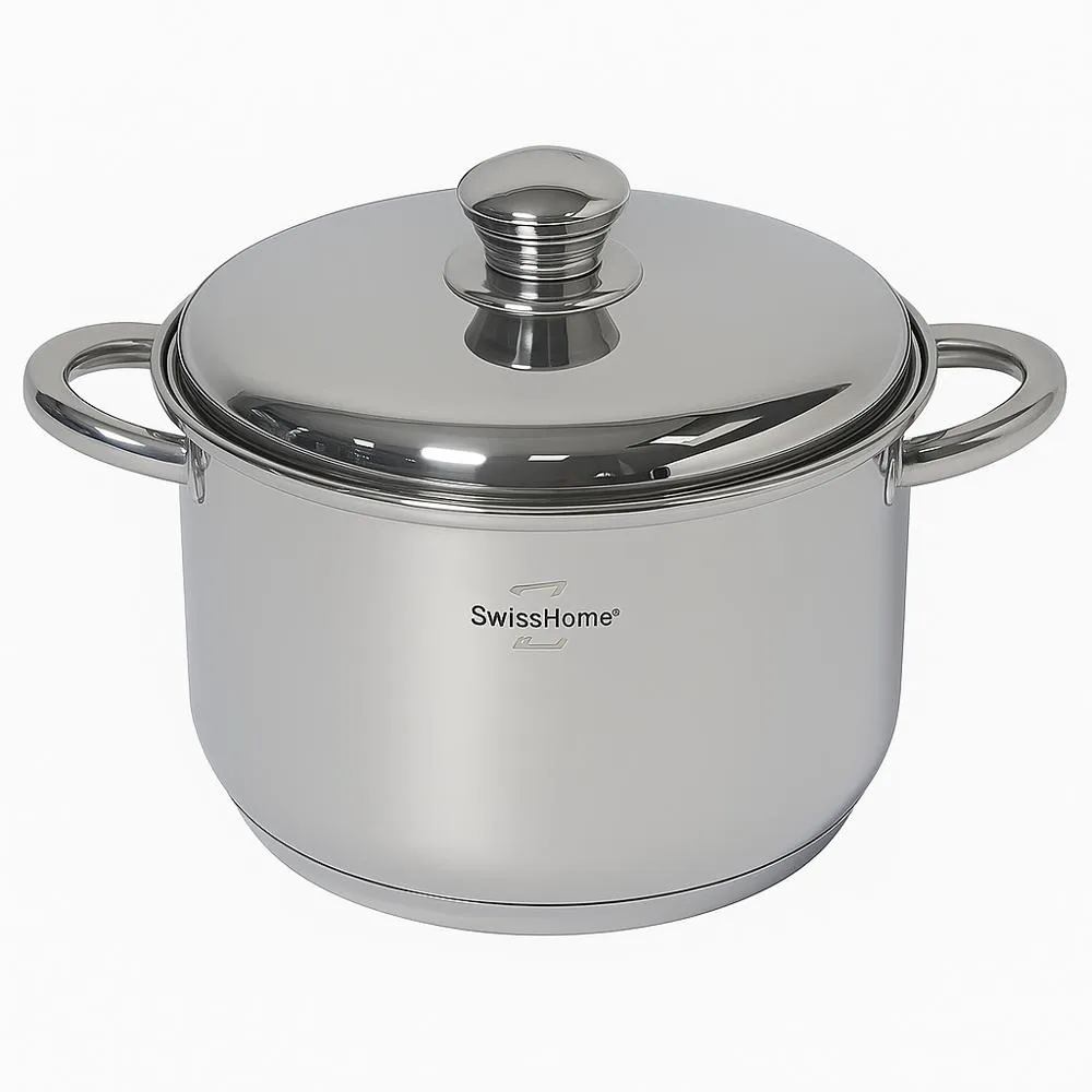 Transforma tu cocina en un espacio de elegancia y rendimiento con el Juego de 6 ollas + tetera SWISSHOME en acero inoxidable grado quirúrgico. Vive la experiencia de cocinar con calidad suiza, precisión y durabilidad que se siente en cada plato.